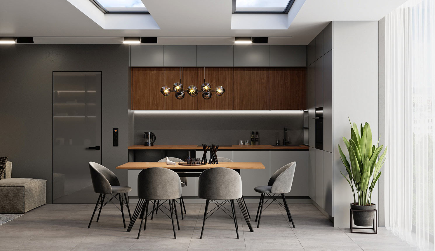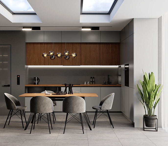 Угловая серая кухня