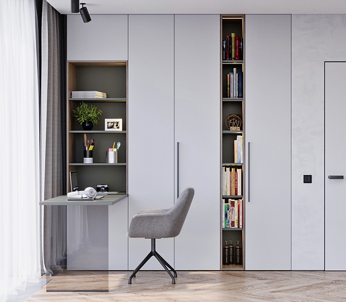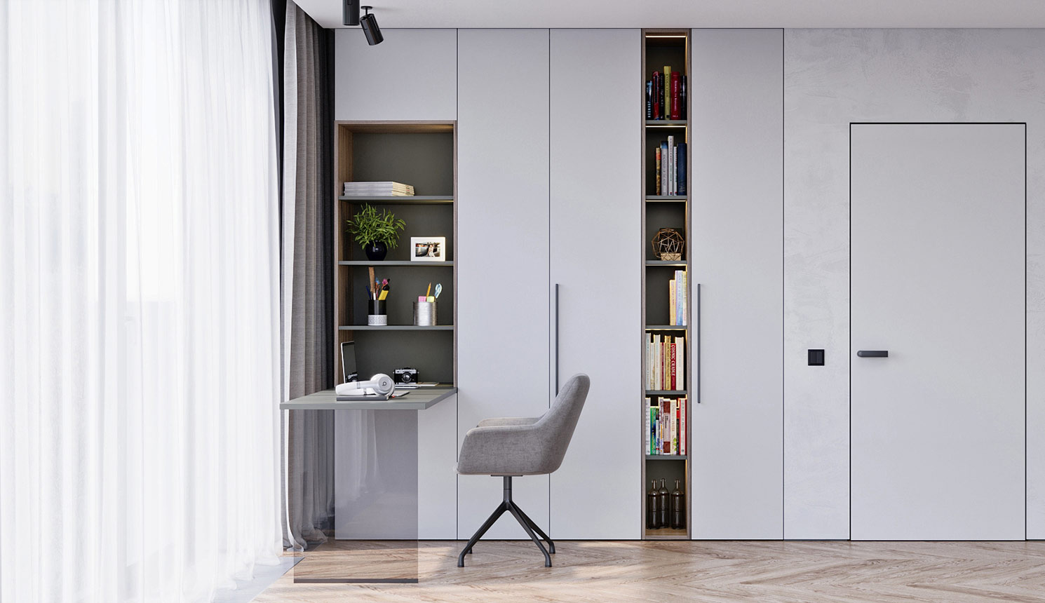 В маленькой комнате лучше использовать встроенные модели или шкафы с зеркальными фасадами — они визуально расширяют пространство. В просторных спальнях и гостиных можно разместить крупные корпусные шкафы с распашными дверями.