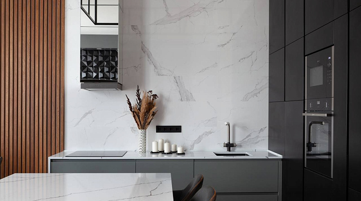 Столешница/ Фартук: Кварцевый агломерат technistone poetic Black matt